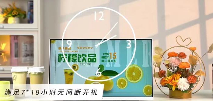 就外觀特性而言,24V2-X電子餐牌外觀簡約時尚,其采用窄邊框設(shè)計,從而讓機身整體看起來更加纖薄精致;白色簡約的金屬外觀,更顯高端質(zhì)感;節(jié)能和安規(guī)方面擁有十分成熟的認證體系,也能更好地滿足新零售業(yè)態(tài)下高品質(zhì)的設(shè)備需求。實際應(yīng)用中,電子餐牌能提升茶飲門店的大氣觀感,為門店服務(wù)及環(huán)境“加分”。