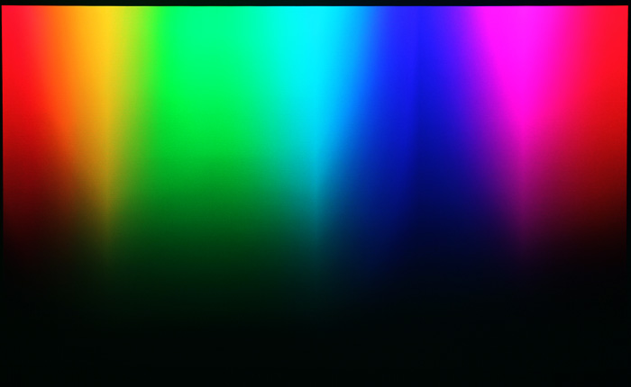 極米RS 20 PLUS 在色彩通透性方面表現也同樣出色。從實拍圖(下圖)可見,其呈現出的色彩從紅到紫等多種色調過渡自然且清晰,各色彩間界限分明又融合得恰到好處,沒有出現色彩渾濁、發暗的情況,讓每一種色彩都鮮活明亮,整體畫面色彩通透感十足。